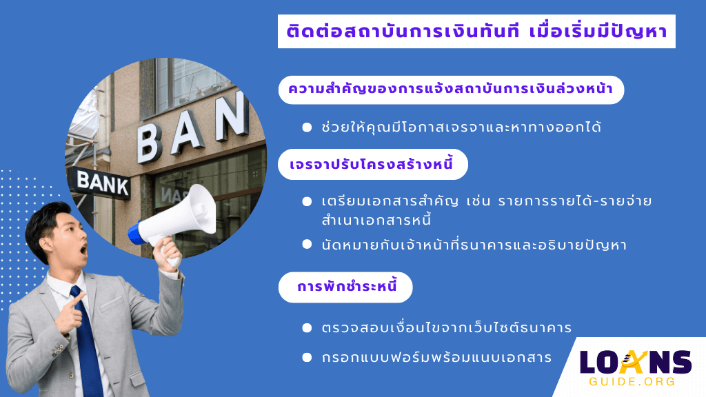 ติดต่อสถาบันการเงินทันที เมื่อเริ่มมีปัญหา